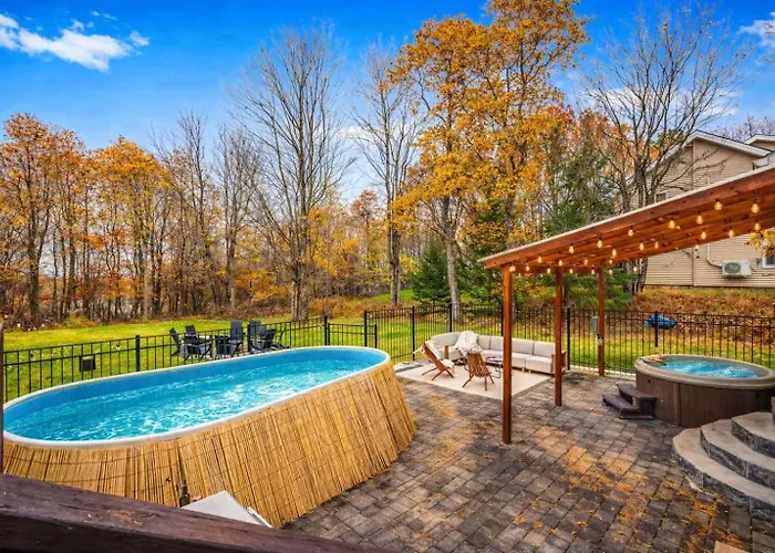 La villa Luxury Escape 5Br Pool Hottub Game Room Firepit Long Pond está situada a unos 7 km del Parque Acuático Camelbeach Mountain, lo que permite acceder a varios puntos turísticos cercanos.